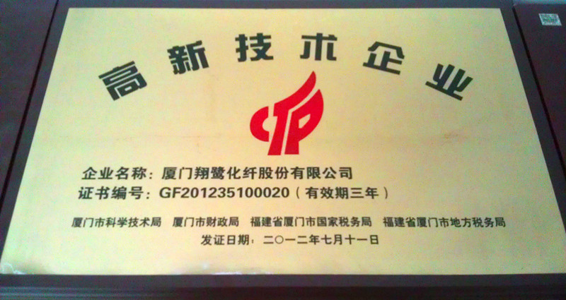 祝賀翔鷺化纖榮獲“高新技術(shù)企業(yè)”“納稅特大戶”稱號根據(jù)《高新技術(shù)企業(yè)認定管理辦法》和《高新技術(shù)企業(yè)認定管理工作指引》有關(guān)規(guī)定及全國高新技術(shù)企業(yè)認定管理工作領(lǐng)導(dǎo)小組辦公室《關(guān)于廈門市2012年第二批高新技術(shù)企業(yè)復(fù)審備案申請的復(fù)函》現(xiàn)確認廈門翔鷺化纖股份有限公司為高新技術(shù)企業(yè),頒發(fā)“高新技術(shù)企業(yè)證書”授予“高新技術(shù)企業(yè)”稱號。
