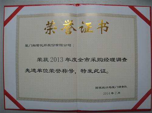 祝賀翔鷺化纖被授予“2013年度采購(gòu)經(jīng)理調(diào)查先進(jìn)單位”的榮譽(yù)稱號(hào)2013年度,國(guó)家統(tǒng)計(jì)局開展采購(gòu)經(jīng)理(PMI)調(diào)查并進(jìn)行多家參與評(píng)比,我司嚴(yán)格按照要求,認(rèn)真、及時(shí)、準(zhǔn)確上報(bào)調(diào)查報(bào)表與分析材料,為政府部門提供了詳實(shí)的信息。 為此我司在2013年度,全省采購(gòu)經(jīng)理調(diào)查工作進(jìn)行考核評(píng)比中,被授予“2013年度采購(gòu)經(jīng)理調(diào)查先進(jìn)單位”的榮譽(yù)稱號(hào)。 今后,我司將繼續(xù)做到數(shù)據(jù)報(bào)送及時(shí)準(zhǔn)確,并堅(jiān)持?jǐn)?shù)入一庫(kù)、數(shù)出一門、一數(shù)一源的統(tǒng)計(jì)原則,充分發(fā)揮統(tǒng)計(jì)工作在企業(yè)管理中的數(shù)據(jù)信息支撐作用。