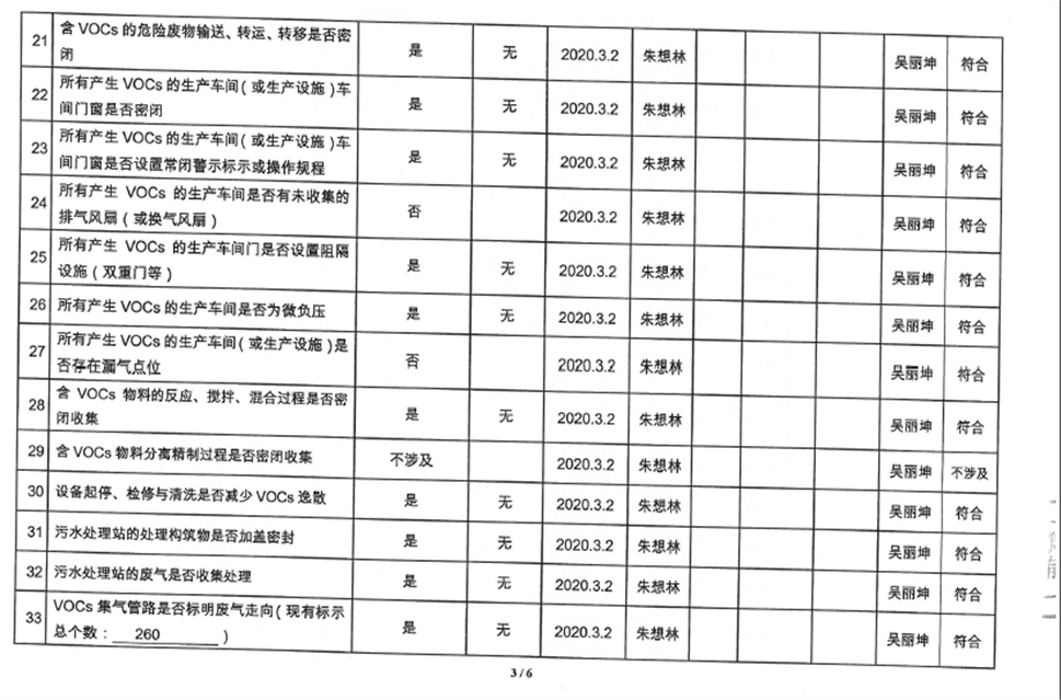 廈門市揮發(fā)性有機(jī)物污染防治企業(yè)自查表(2020年第二季度)